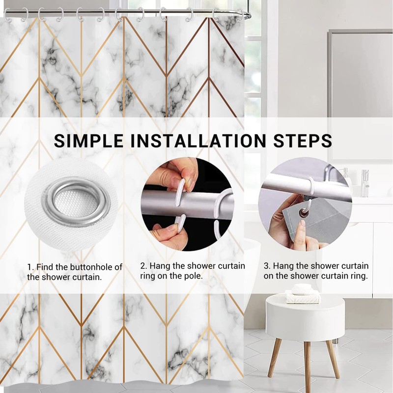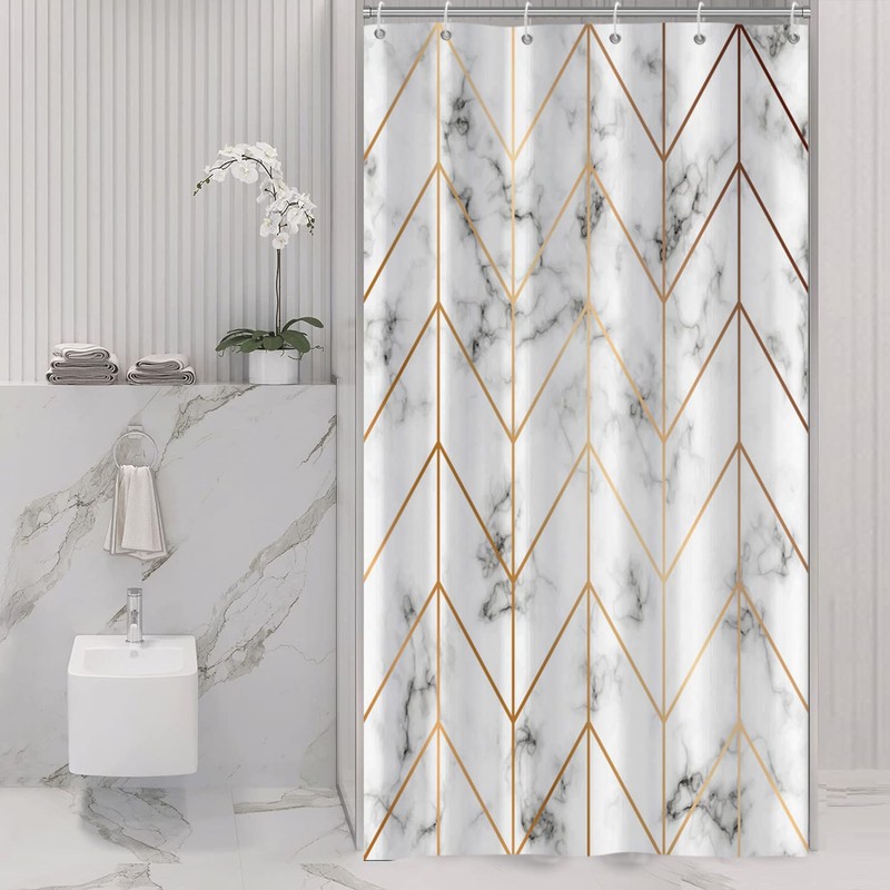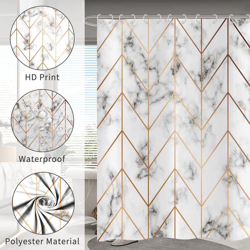 - Perfect decoration for bathroom: this marble shower curtain geometric design is chic and stereoscopic, it is great for any season. The geometric pattern shower curtain marble set makes the bathroom look more discreet, tidy and elegant.