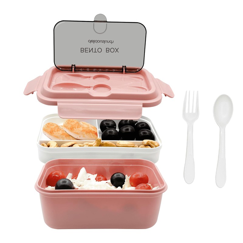 - Customer Service:There is a fork and spoon in this double layer lunch box. If you have any questions, please feel free to contact us and we will reply you within 24 hours.