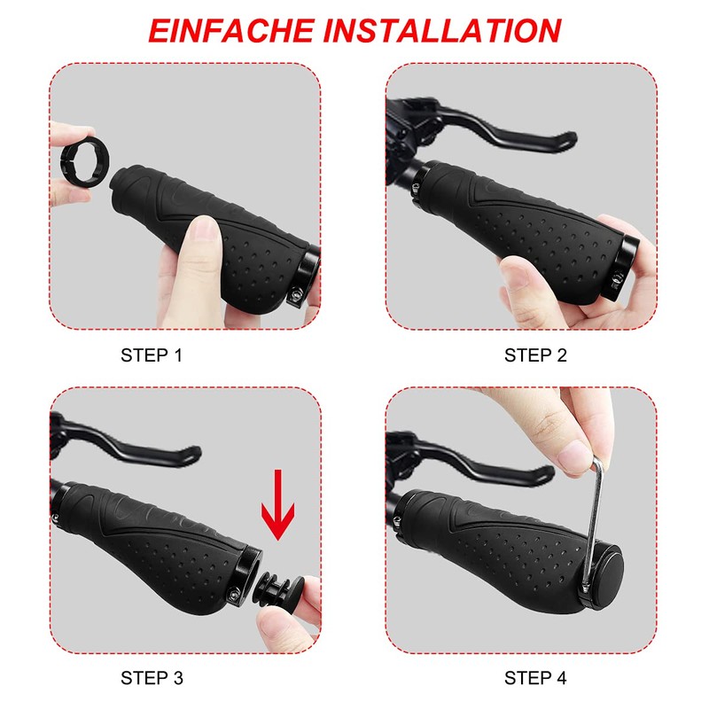 • Easy installation: the mountain bike handlebar grips come with an assembly tool that can be quickly removed and installed with a simple wrench provided. They are equipped with high-quality plastic caps for effective dust protection, protection against penetrating water and grip protection.