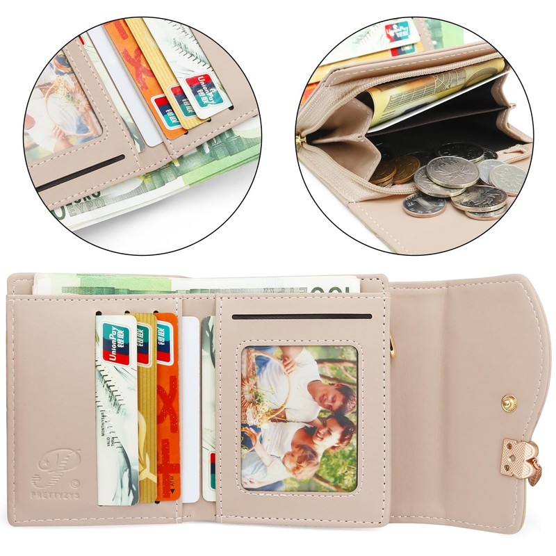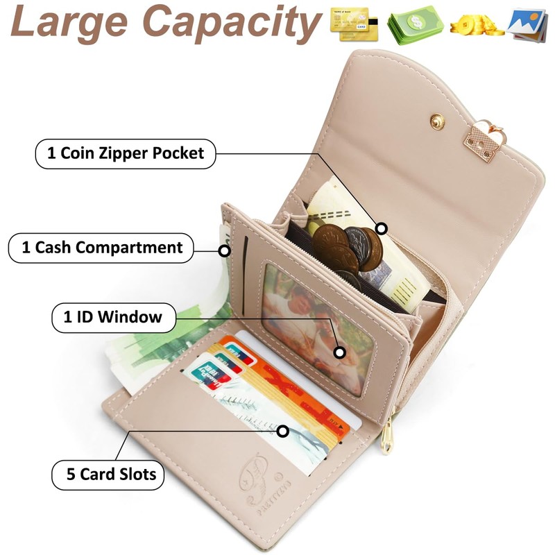 - Small but spacious: this women's wallet has 6 card slots (including 1 ID window), 1 note compartment and 1 coin pocket with zip. This small women's wallet can meet almost all your storage requirements, so you can be on the go with ease.