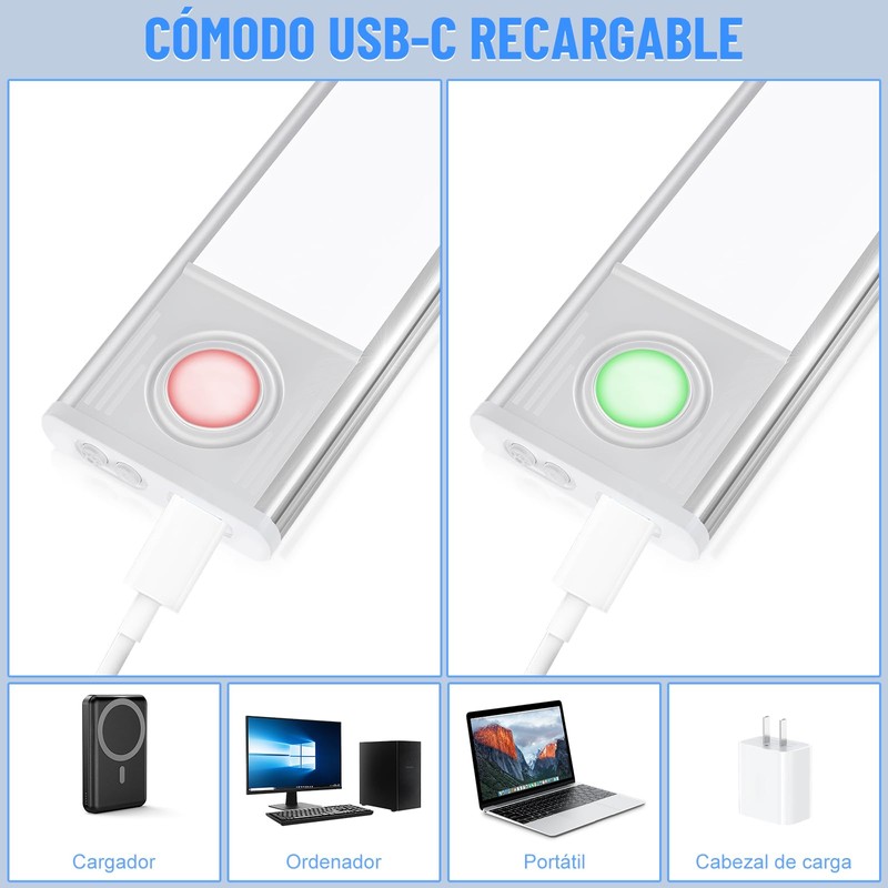 - [USB-C Recargable]Luz con sensor de movimiento tiene una batería incorporada de gran capacidad, bajo consumo de energía y está equipado con un cable de carga USB-C. Puede cargarlo en su computadora portátil o conectarlo a un cargador, lo que lo hace más cómodo de usar.