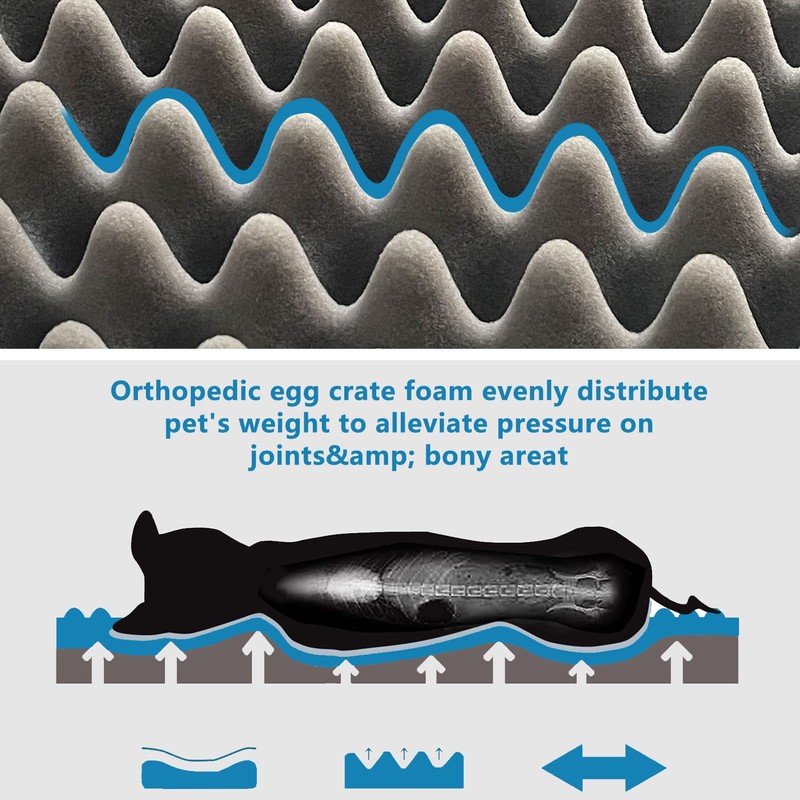 - 【HIGH-DENSITY FOAM】- 4" high-density egg-crate foam allows for better airflow and gently cradles your pet's entire body to relieve pressure on his joints. Features a solid foam slab for extra support and comfort. Super soft fabric is cozy for your pet and looks stylish in your home.