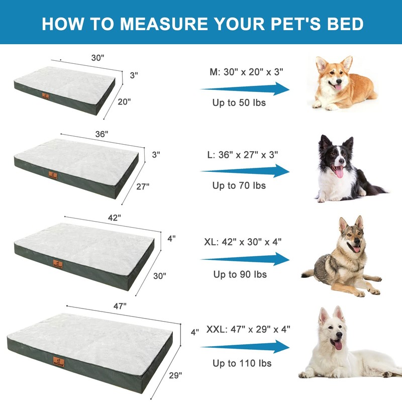 - 【Any Scene You Want】- The large pet beds can be used in multiple scenarios including dog cages, cars, indoors, and outdoors. As the foam is compressed, it takes time to return to standard height, after 24-48 hours, you will get a perfect waterproof dog bed.