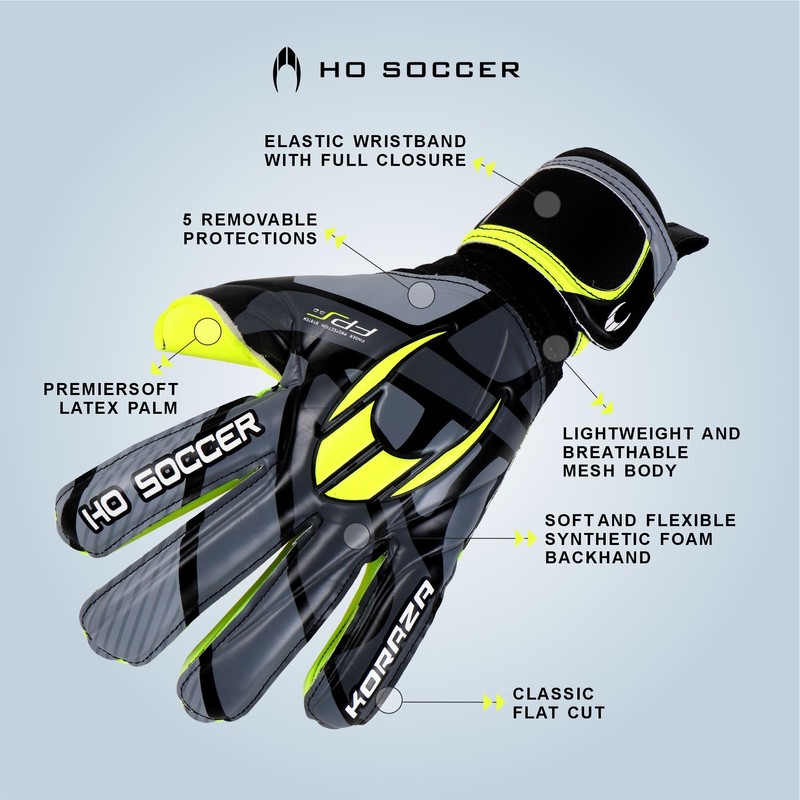 HO Soccer KORAZA Lime Goalkeeper Gloves, Unisex, Kids, Grey/Lime, 5