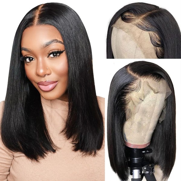 - Glueless Wig:Bob Wig Human Hair 13X4 Frontal Bob Wigs for Black Women, Glueless Wigs with Plucked Baby Hair