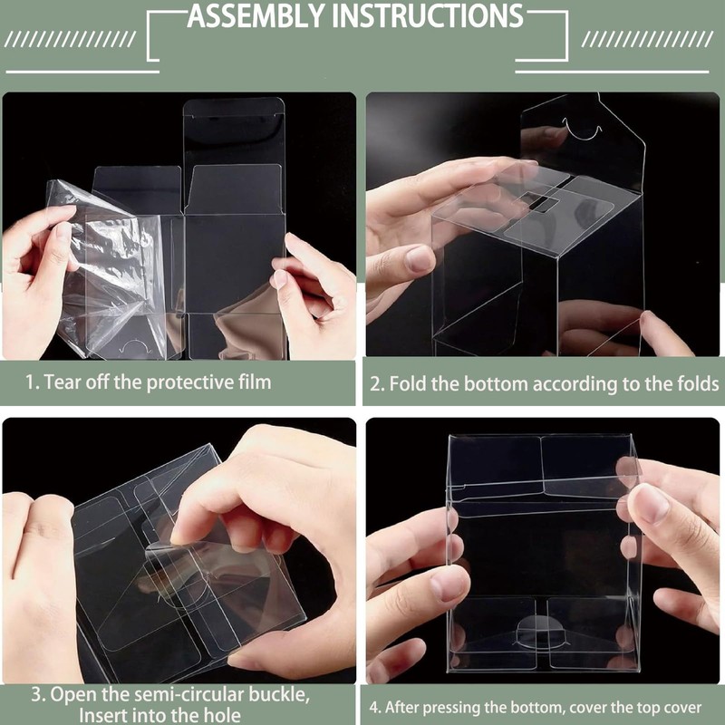 - Easy to assemble and store: the transparent PET box has a unique body and is easy to assemble. When you don't need it, it can be folded flat for convenient storage without taking up space.