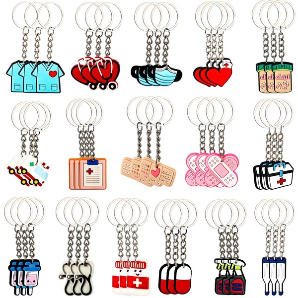 Hoarost 48 Pcs Nurse Keychain Bulk Medical Theme Keyring Cute Mini Nurse Key ...