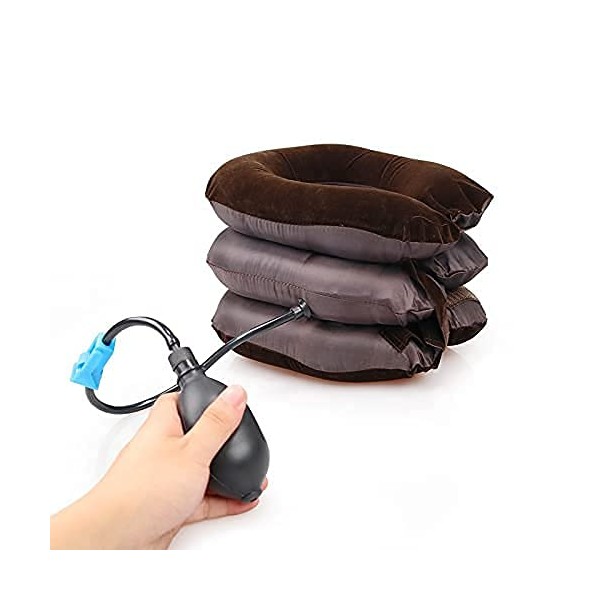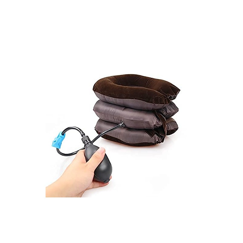 - Utilice la bomba de inflado para elevar la presión lentamente logrando un estiramiento cómodo. la inflación es simple y totalmente ajustable, así que usted puede tener la tracción de justa en su cuello.