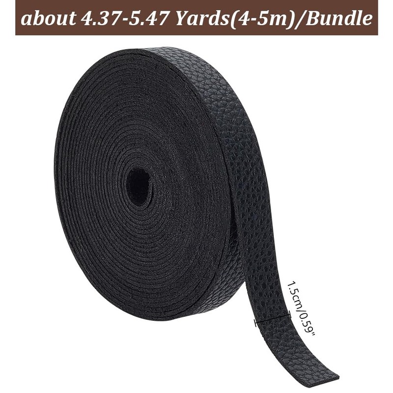 HOBBIESAY 4.37Yards 0.59Inch Wide Black Flat Leather Straps Roll Belt Wrap Lychee Pattern Leather Strips for DIY Craft Projects Pet Collars Belts Keychains Jewelry Leather Watch