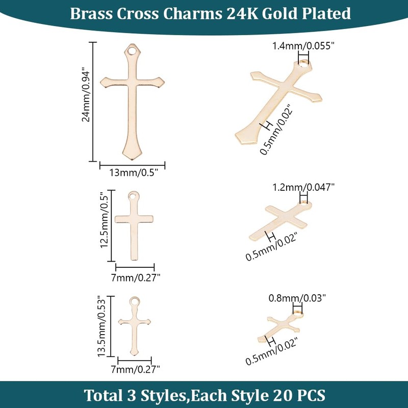 HOBBIESAY 60Pcs 3 Styles Small Cross Charms 12.5-24mm Long Tibetan Style Cross Pendants Golden Crucifix Crosses Dangle Pendants for Bracelet Necklace Jewelry Making Hole: 0.8-1.4mm