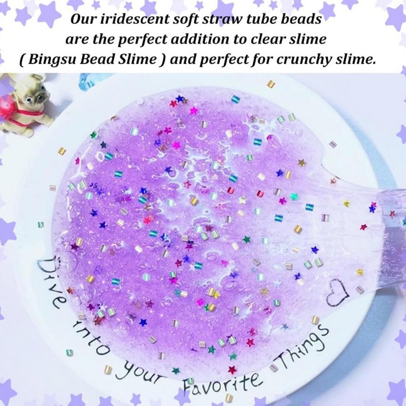 HOBBIESAY 8 Colours Approx. 8464 Pieces Crispy Bingsu Beads 3D Glitter Plastic Beads 3mm Blue Purple Iridescent Soft Tube Beads For The Range Crispy Micro Beads
