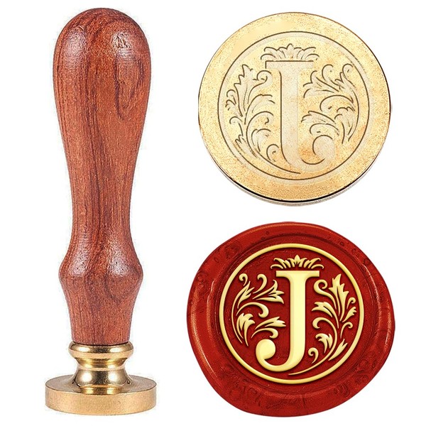 Hobbspring 1 Piece Wax Seal Stamp with Alphabet Retro Medieval Traditional Initial J Sealing Wax Stamp Gift for Christmas 25 mm Brass Stamp Head with Wooden Handle for Envelopes