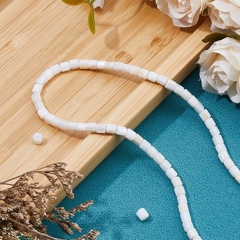 Hobbspring 3 Strands Natural Freshwater Shell Beads 5mm Column Shell Beads Mother of Pearl Beads Cylinder Tube Loose Beads for Necklace Bracelet Earring DIY Jewelry Making