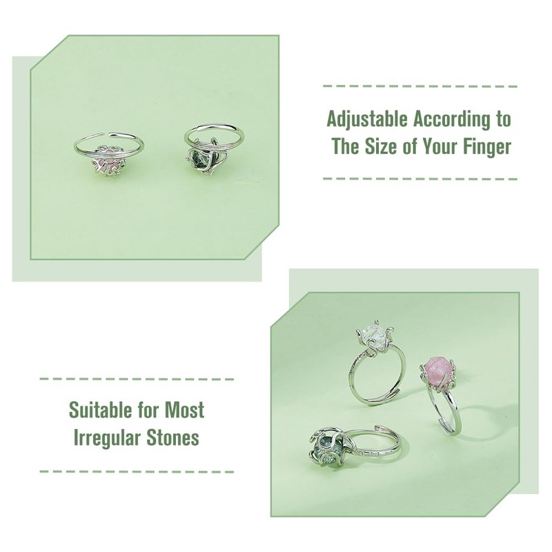 Hobbspring 3Pcs 3 Styles Blank Ring Base Setting Platinum Brass Adjustable Ring Findings Prong 5 Claw Ring Settings Finger Ring Blank Base for Irregular Gemstone Jewelry Making Women