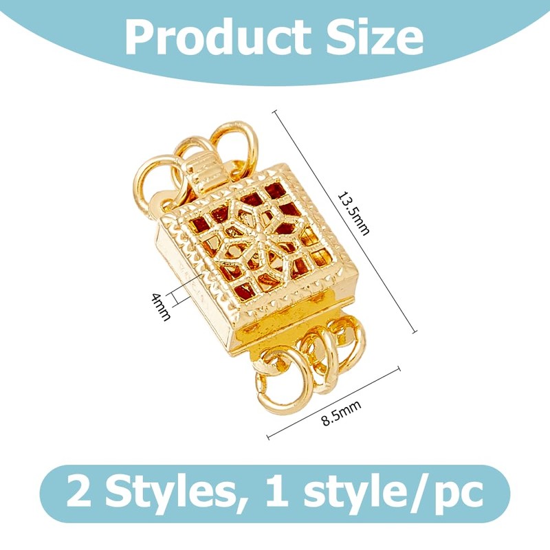 Hobbspring Set of 2 Necklaces Box Clasp for 2 and 3 Strands Necklaces Layer Clasps Real 14 Carat Gold-Plated Multiple Necklaces Connectors Clasp for Necklaces Jewellery Making