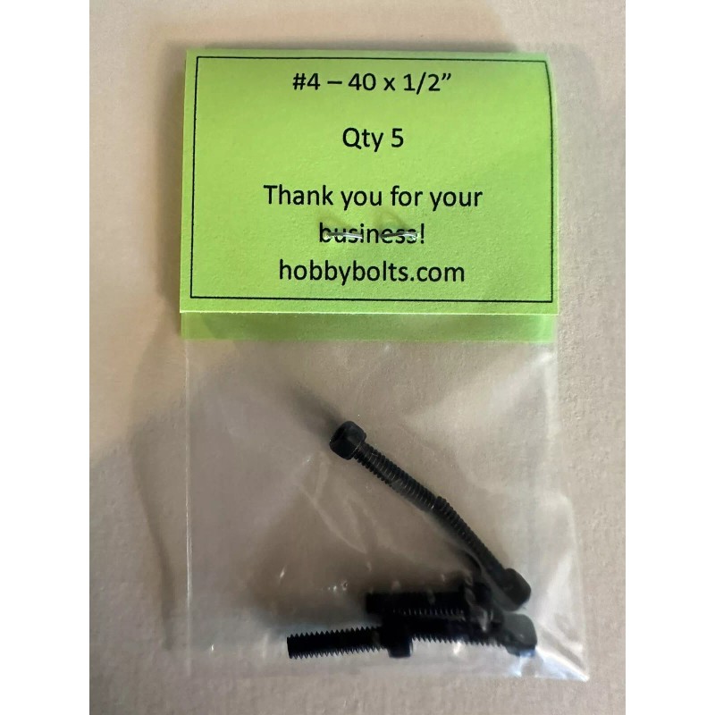 4-40x1/2” socket head cap screws packaged in quantities of 5pcs per pack are the perfect screws for your radio controlled hobby needs and many other hobbies. hobbybolts.com