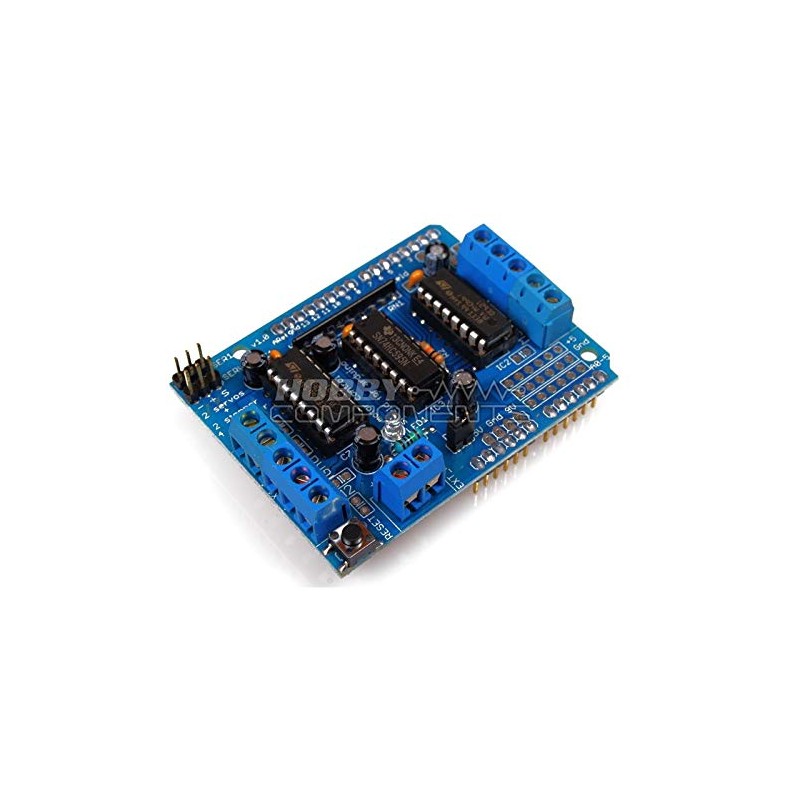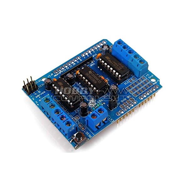 - - 2 interfaces for 5V Servo connected to Arduino's high-resolution dedicated timer - no jitter! - Can drive 4 DC motors, 2 stepper motors or 2 Servo - Up to 4 bi-directional DC motors with individual 8-bit speed selection