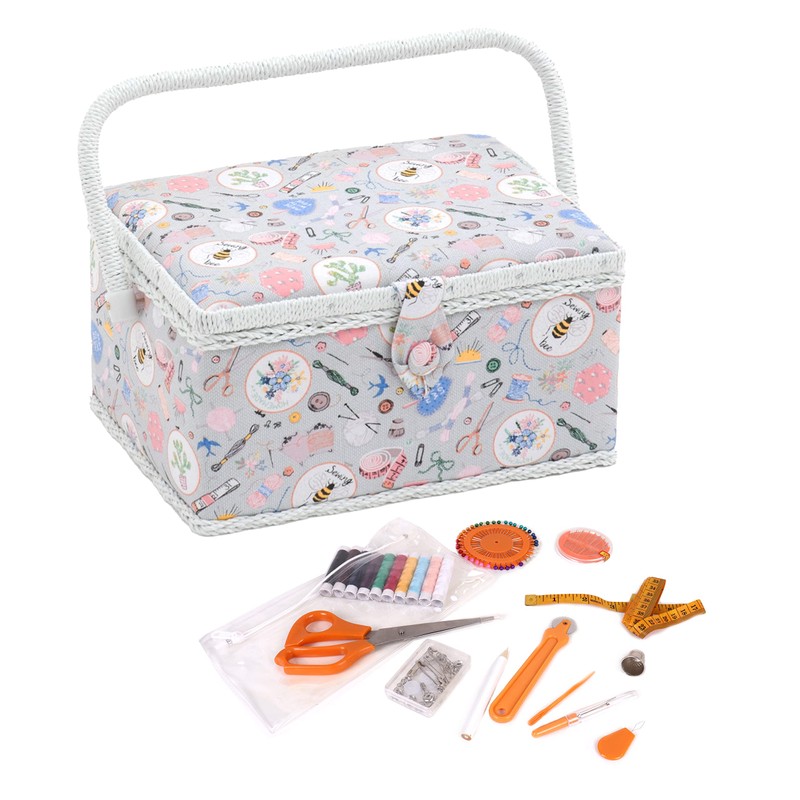Hobby Gift Filled Sewing Box - Craft & Hobby Storage, Sewing Basket with 94 Piece Sewing Kit Included, Medium, Homemade, 18.5 x 25.5 x 14.5cm