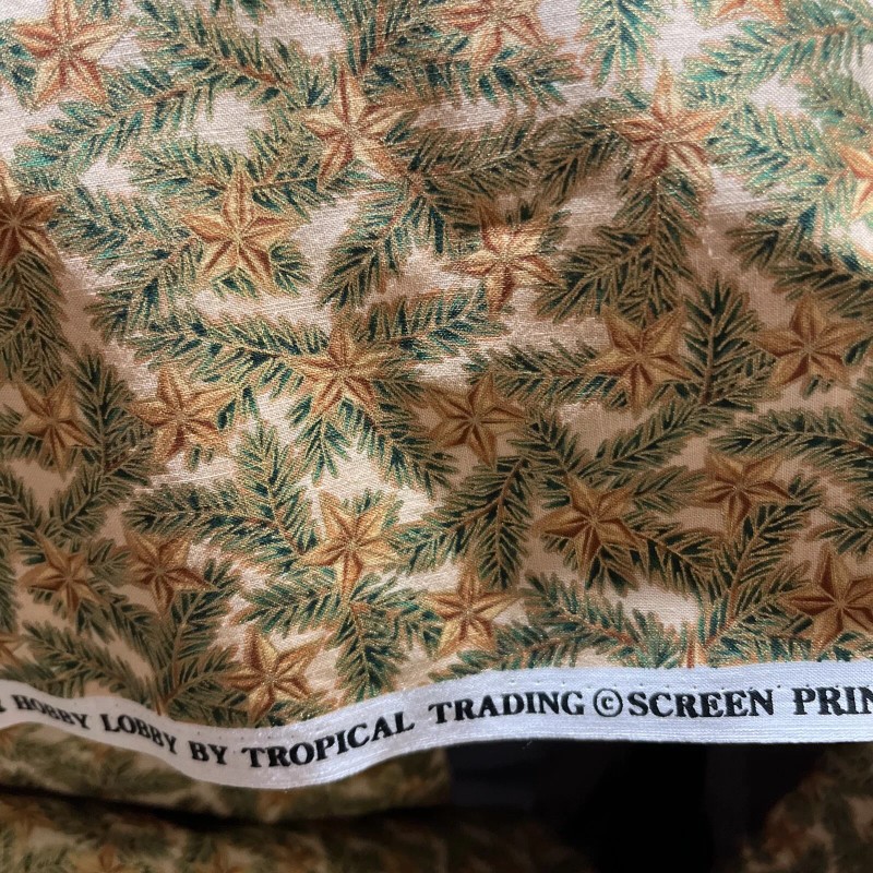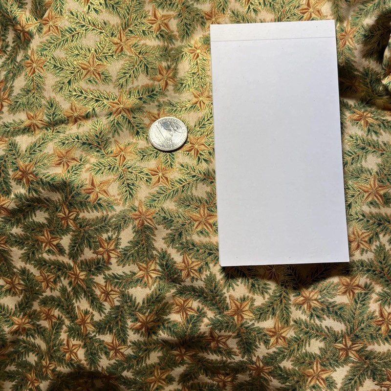 Hobby Lobby By 1/2 Yd Green & Metallic-Gold Pine Branches Gold Stars Hobby Lobby Cotton Fabr