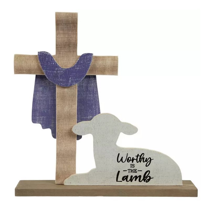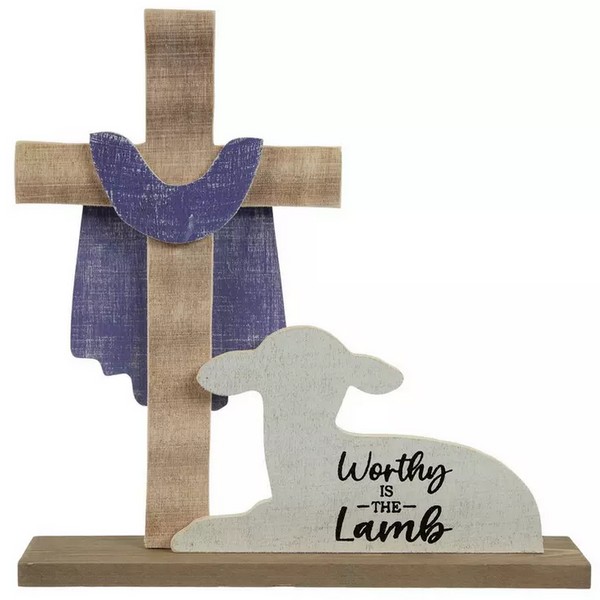 ITEM: Easter Decor - Wood Worthy of the Lamb Cross Tabletop Display