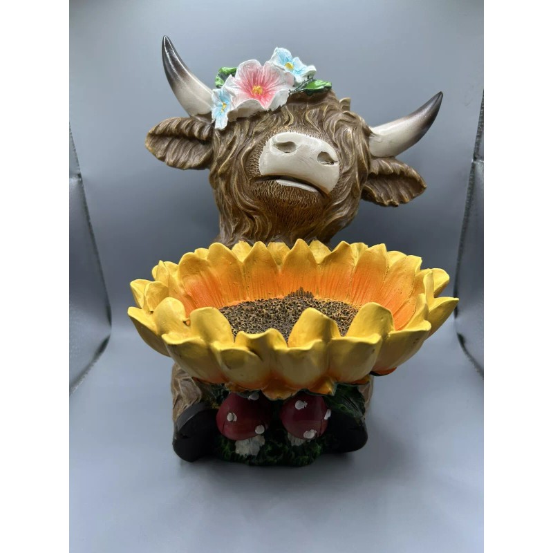 Hobby Lobby Spring Highland Cow With Sunflower Planter Holder Figurine NEW