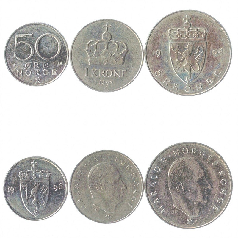 - 3 Coin Set from Norway also known as (Kingdom of Norway, Kongeriket Norge). Denominations: 50 ?re, 1, 5 Kroner. Each product may have different years, picked from the numismatic period: Krone 1992 - 1996.