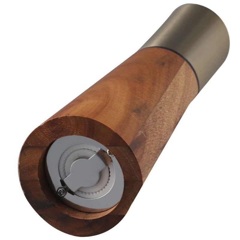 - Sleek and Stylish Design: The combination of metal and acacia wood gives our pepper mill set a modern and sophisticated look. The sleek design will complement any kitchen decor, adding a touch of elegance to your countertop or dining table. Impress your guests with this stylish and functional addition to your kitchen tools collection.
