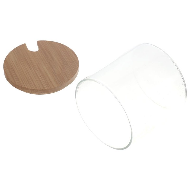 hobbyme Salt and Sugar Seasoning Glass Flavoring Jar Round Storage Jar with Spoon,Glass Bamboo Lid Seasoning Pot,Kitchen Round Storage Tank,Seasoning Container