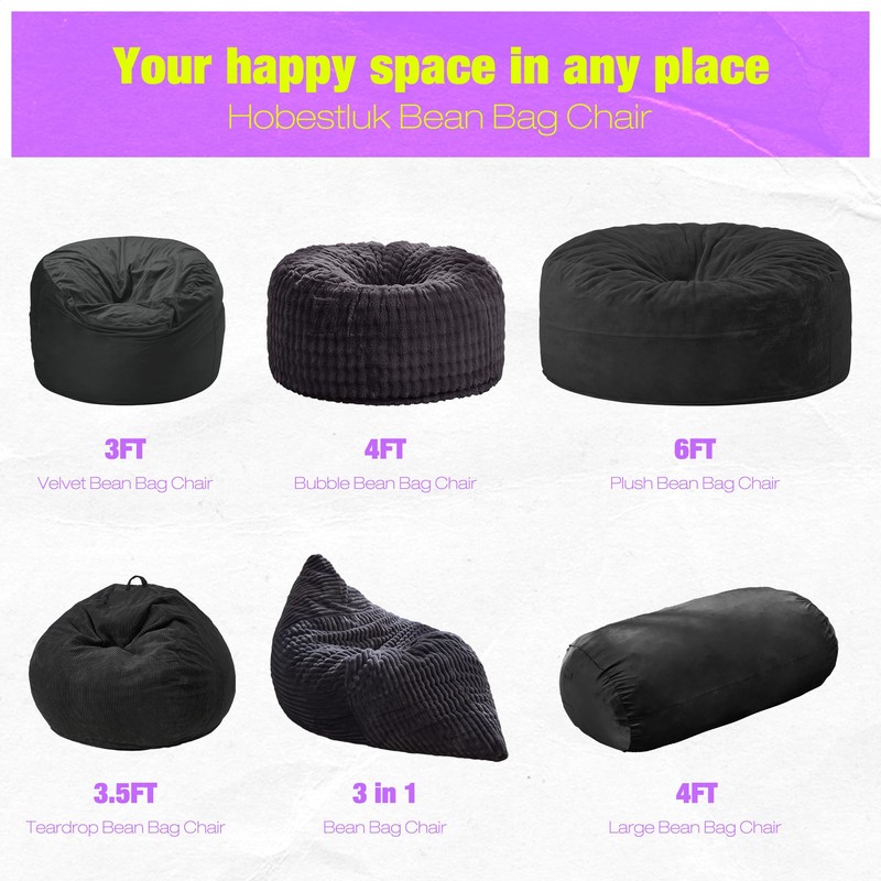 - Premium Comfort Fabric: The Hobestluk bean bag chair is wrapped in soft, skin-friendly fabric that feels like a gentle hug. The removable cover is machine washable, ensuring your bean bag always looks and feels fresh, ready to welcome you back to comfort.