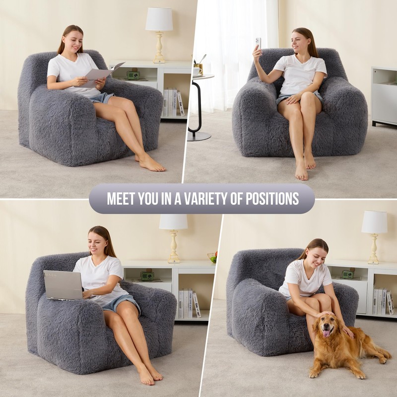 - Fluffy and Skin-friendly Fabric: Our giant bean bag chair is made of skin-friendly and soft fabric, it's cozy and plush and feels like a big hug when you sit on it. There is a hidden zipper on the bottom of the bean bag sofa chair, you can remove the bean bag cover and throw it in the washing machine to keep it clean.