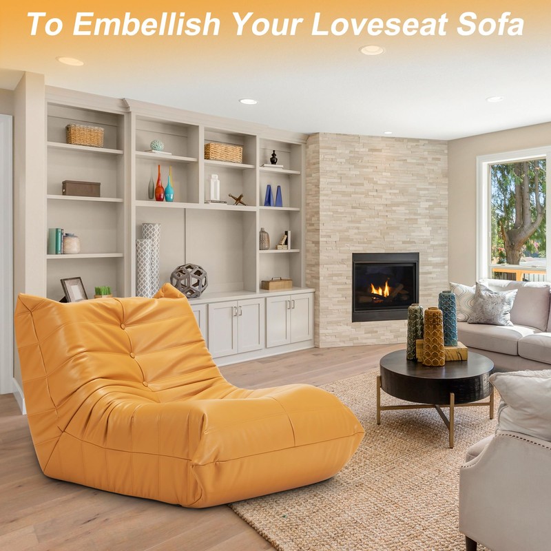 Hobestluk Bean Bag Chair Giant Bean Bag Sofa Memory Foam Bean Bag Chairs for Adults, Bean Bag Couches Faux Leather Bean Bag Chairs for Living Room Bedroom Dorm Office (Yellow)
