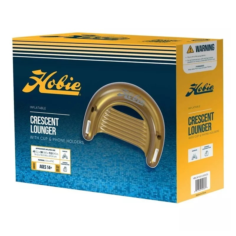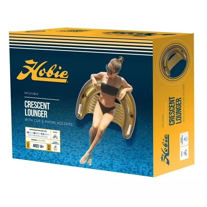 Hobie 3⃣-Pk Crescent Lounger Gold Float w/ Cup & Phone Holder, 8+, Comfy Seat