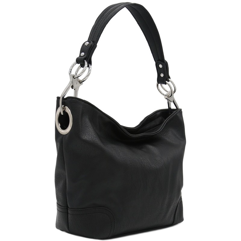 Hobo Shoulder Bag with Big Snap Hook Hardware (Black)