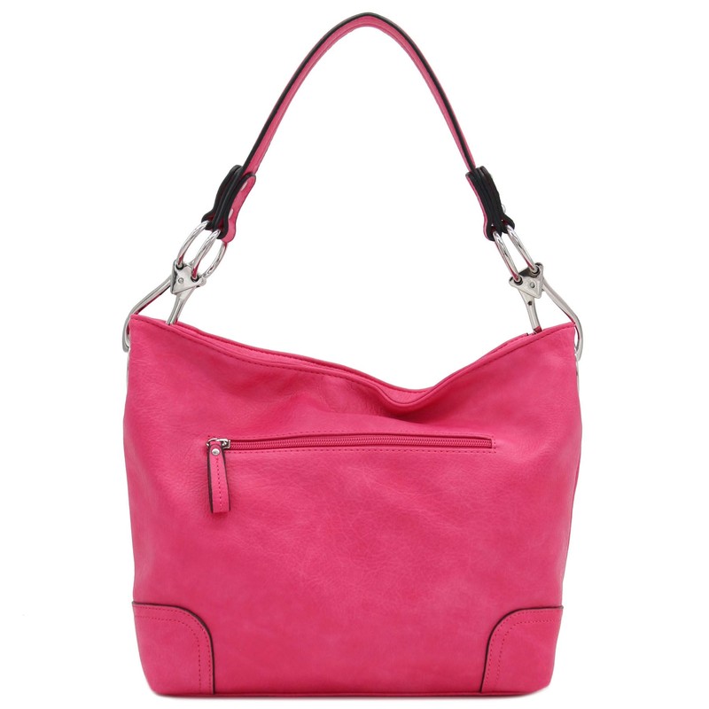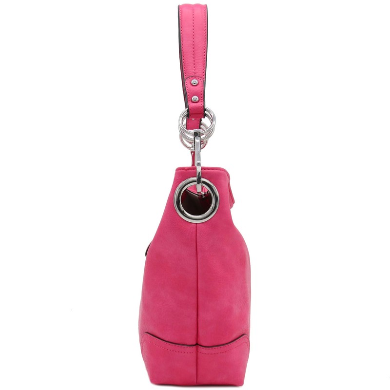 Hobo Shoulder Bag with Big Snap Hook Hardware (Fuchsia)