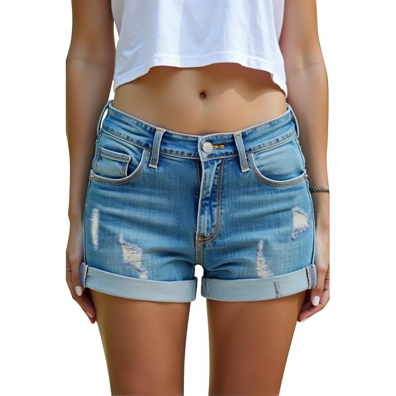 HOCAIES Women's Juniors Mid Rise Jean Shorts Folded Hem Denim Shorts for Women Shorts