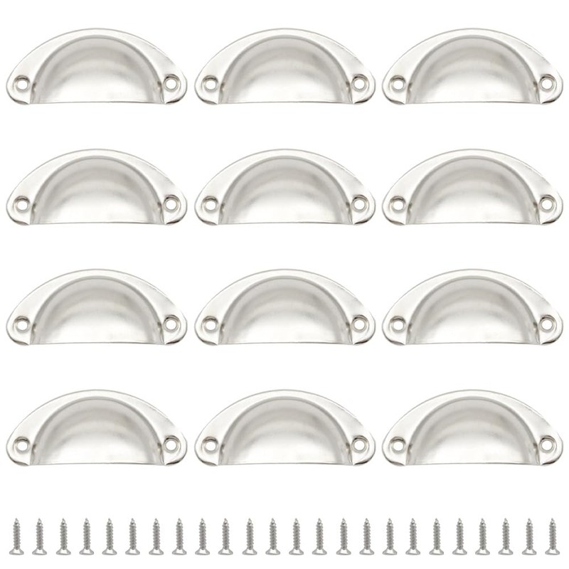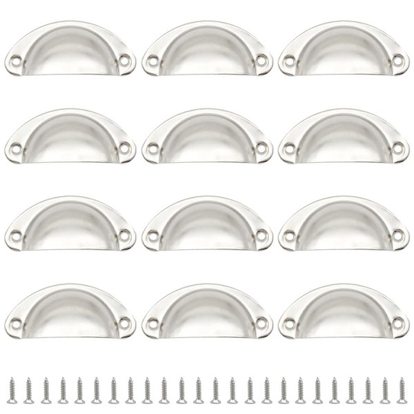 Hocansen 12 PCS Shell Cup Handles 81mm Metal Drawer Pull Handles Silver Shell Shape Handle Knobs Semicircle Cup Handle with Screws use for Wardrobe, Cupboard and Drawer (Silver/LS-BK)