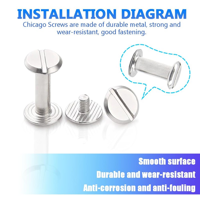 Material: Chicago screws are made of high quality metal, strong and durable for long term use.