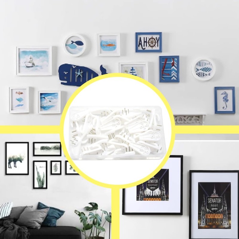 - Material: Sturdy Plastic Hooks + Metal Invisible Nails, little damage to the wall, perfect for lighter decorations and photo frames.