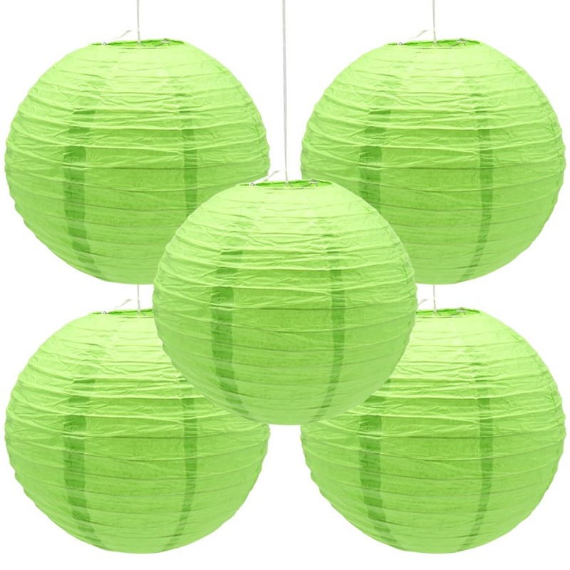 Hocansen 5Pcs Paper Lanterns Decorative 12in Hanging Round Paper Lanterns Lamp Chinese Paper Lanterns for Birthday Wedding Baby Party Decoration (Green/DL)