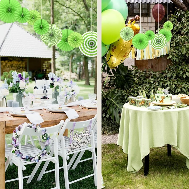 Hocansen 6PCS Hanging Paper Fans Set 8/12/16in Party Decoration Paper Fans Round Pattern Paper Garlands Decoration for Birthday Bridal Wedding Baby Shower Graduation Events(Green/ZS)