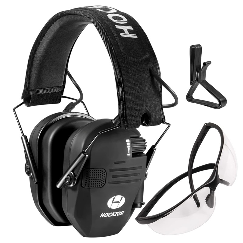 HOCAZOR HZ01 Active Ear Protection, Electronic Ear Protection, Shooting Sports, Ear Muffs, Noise Reduction, Sound Amplification, Adjustable Ear Protection for Hunting, Shooting Range, NRR 23 dB, Black
