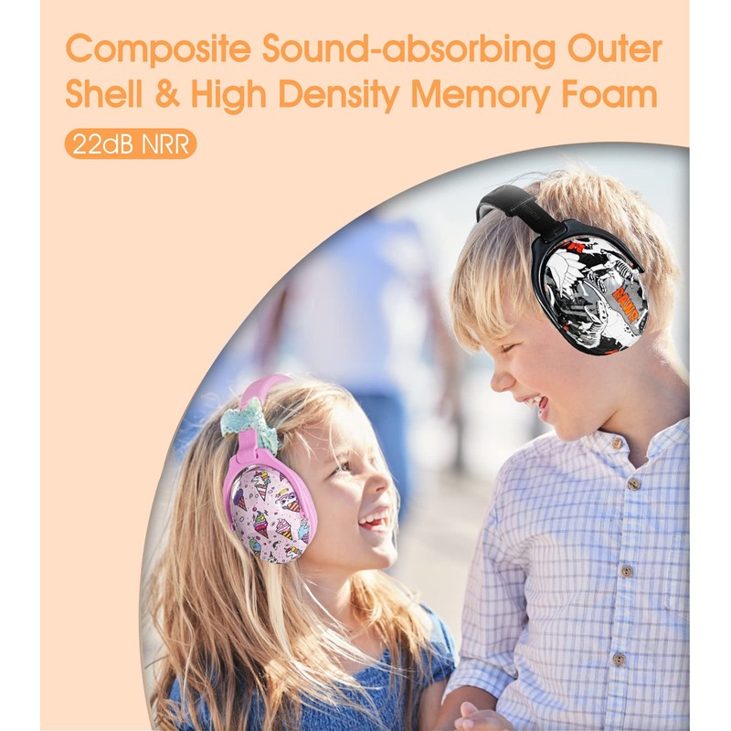 Hocazor HZ015 Kids Ear Protection-SNR 27dB Safety Earmuffs Durable Composite Material Hearing Protector Boys Noise Cancelling Headphones - Black Dinosaur