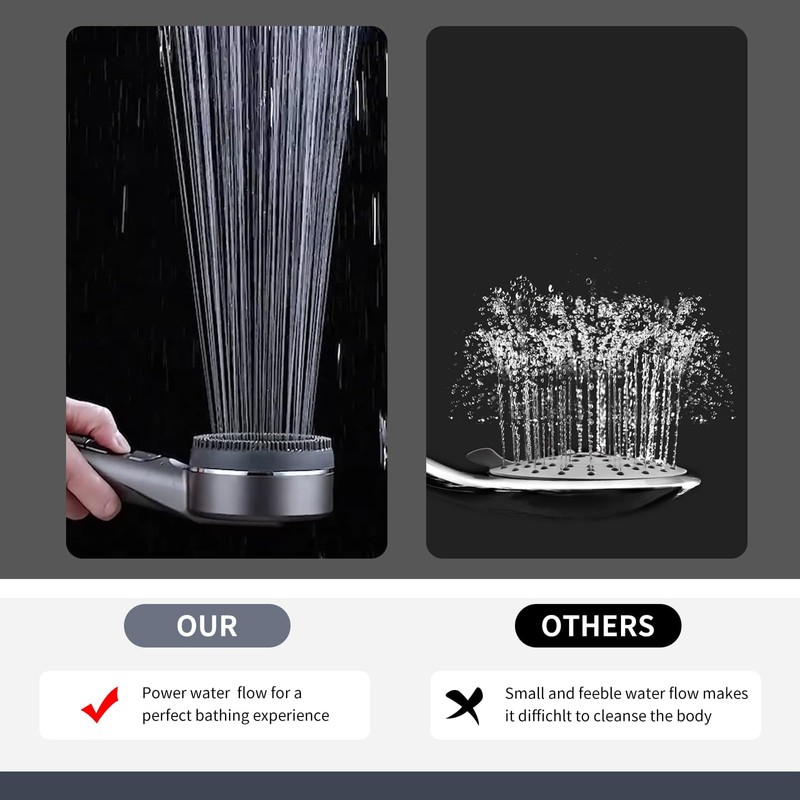 - 【 High Quality Material 】- This handheld shower head is made of high quality ABS material and multi-layer plating chrome finish, which makes shower head lightweight, durable, anti-corrosion and no fade, ensuring a long service life. Equipped with a liquid silicone massage strip, it provides SPA-level pleasure and makes bathing more enjoyable.