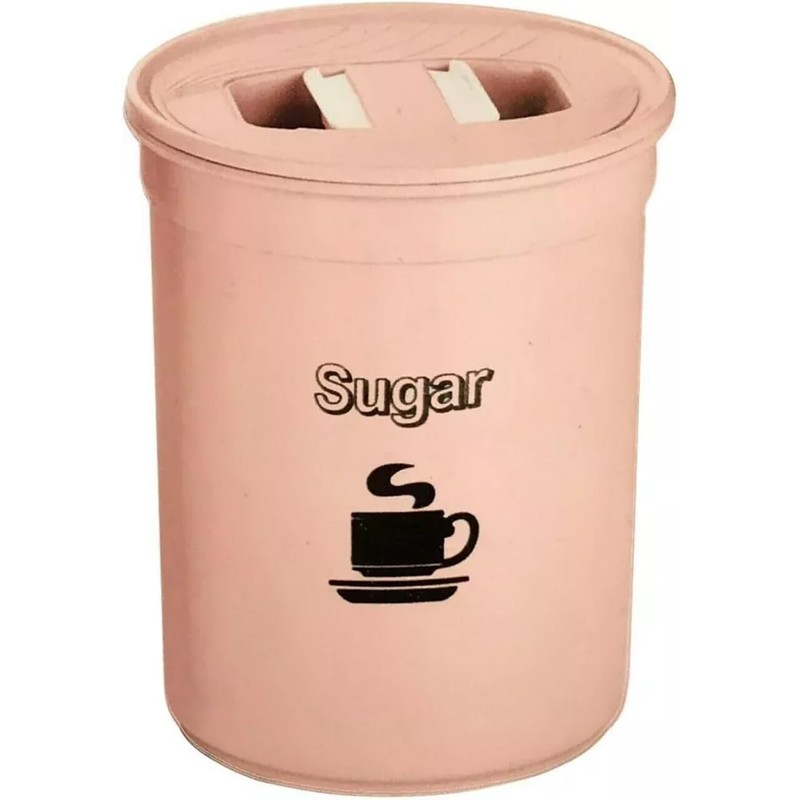 HOCHSTE 3pc Tea Coffee Sugar Canister Set, 850ml Airtight Plastic Storage Jars, Round Food Grade Container for Kitchen, Easy to Clean, Pink & Blue Design Cylinder Pink 850ml 3 Pack Set