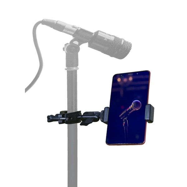 - Functional phone holder for mic stand, compatiable with almost all phone model(Width range up to 3.2"), And it can clamp the stand pole firmly.