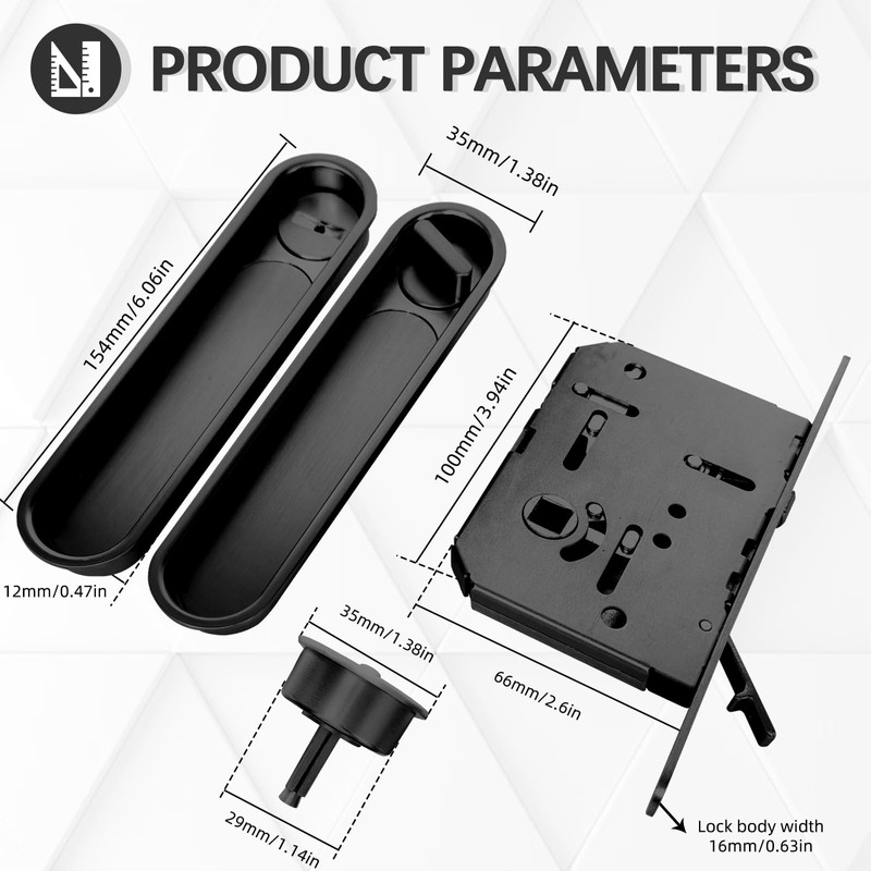 - Concealed Pocket Door Lock Handle: This sliding door lock has hidden design with an integrated pull, allowing for seamless operation. Simply reach in to pull it open, and it retracts neatly into the door frame when not in use
