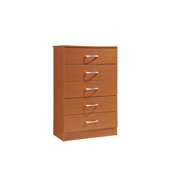 Hodedah 5 Drawer Chest, with Metal Gliding Rails, Cherry