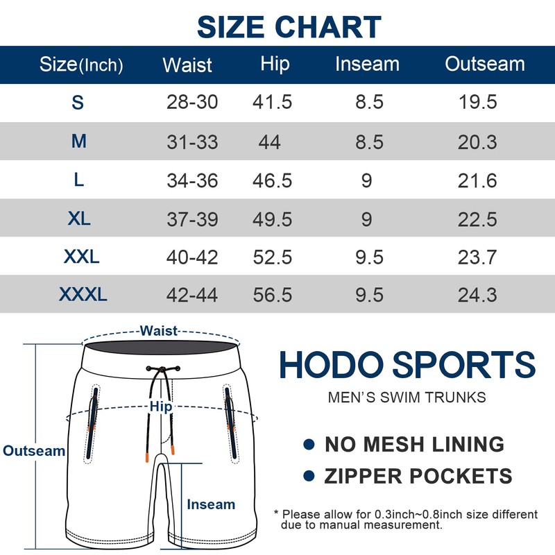 - Traje de baño hasta la rodilla: entrepierna de 9 pulgadas, adecuado para la mayoría de las personas con altura.