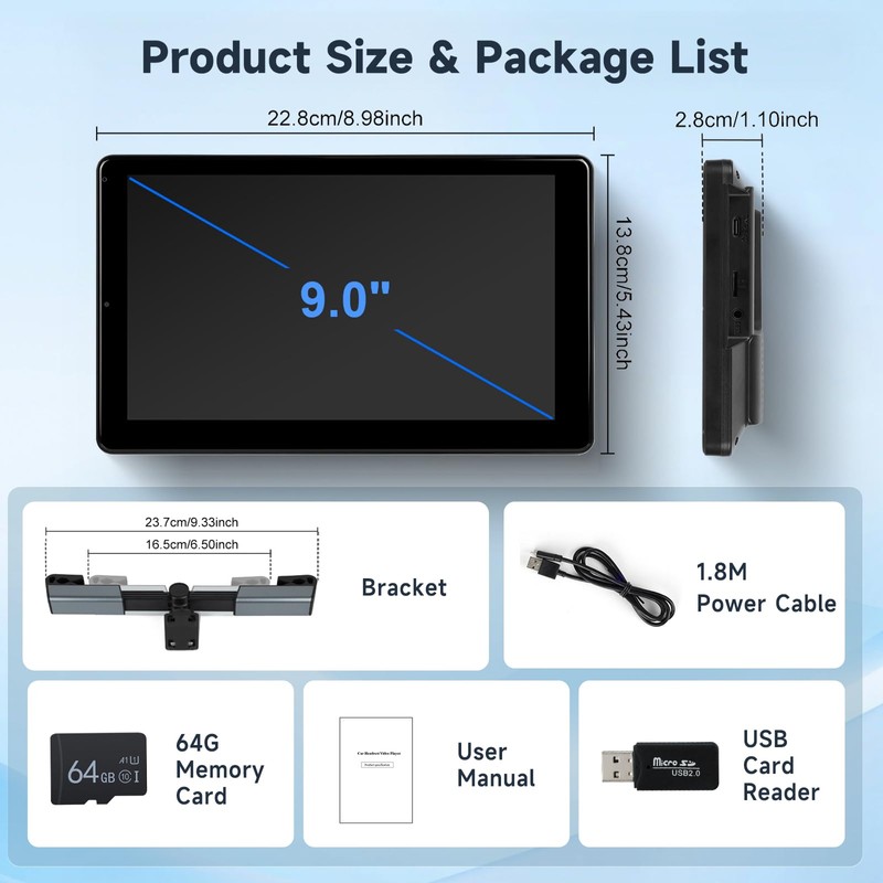 Hodozzy 9 Inch HD Touchscreen Car Headrest Monitor with CarPlay & Android Car, Car TV with Bluetooth, Super Link, FM Radio, AUX, 64G TF Card, Universal Screen Headrest for All Cars