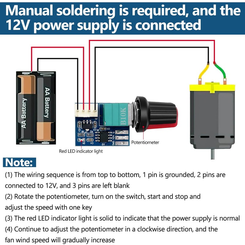- Compact design for DIY: Compact size and easy to install in small spaces, suitable for DIY modifications. Note: Manually soldering the cable to connect to the 12V power supply.